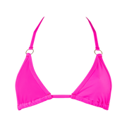 Take your beach look to the next level with our Sofia Triangle Bikini Top. This micro bikini top is designed to make a statement and turn heads, crafted from a delicious hot pink swim fabric that looks and feels fabulous on any skin tone. It features a slide triangle style, which can be adjusted to hold your curves in place and a halter tie top for added flexibility. It also has an adjustable elastic under bust for a custom fit while small gold o-rings adorn the top of the slideable triangles, adding an elegant finishing touch. Whether you’re hitting up the pool or spending all day at the beach, this exceptional bikini will keep you looking stylish no matter where you go. Completely flatter and comfortable, our Sofia Triangle Bikini Top gives you great support without needing any padding thanks to its double-lined design. Why not show off your figure in style this summer? With its on-trend looks and gorgeous color, this sexy swimwear will have everyone talking when you show up at the beach looking as amazing as ever! Buy now for an unforgettable experience!