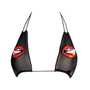 - Featuring an embroidered applique licky lips applique that covers just enough nips ;)